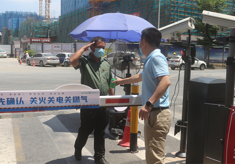 咬定青山不放松,立根原在破巖中。 千磨萬(wàn)擊還堅(jiān)勁,任爾東西南北風(fēng)。 ——清代鄭燮的《竹石》 炎炎酷暑,疫情再起,鴻運(yùn)物業(yè)保安員們站出崗?fù)ぃ斨邷仳?yàn)碼排查,用“咬定青山不放松”的精神,堅(jiān)決踐行防疫措施;用“千磨萬(wàn)擊還堅(jiān)勁”的定力,堅(jiān)守小區(qū)“安全門”。7月26日上午,鴻運(yùn)物業(yè)總經(jīng)理陳喜祥、黨支部書(shū)記陳文遠(yuǎn),同高層代表、黨員代表,前往鴻運(yùn)物業(yè)服務(wù)的小區(qū),慰問(wèn)一線保安員們。總經(jīng)理陳喜祥為保安員們送上飲料,一聲聲“辛苦了”道出對(duì)保安員工作的肯定和感謝。陳總要求各物業(yè)服務(wù)中心備齊解暑應(yīng)急藥品,定期開(kāi)展“送清涼”活動(dòng),讓員工在辛勤的工作中感受到公司的關(guān)懷。鴻運(yùn)物業(yè)黨支部書(shū)記陳文遠(yuǎn)與保安員握手交談,叮囑其多喝水、注意防暑,并切身感受其工作環(huán)境,和黨員代表們一同提出改良建議。在麒麟花園,我們遇到了黨員志愿者,陳文遠(yuǎn)書(shū)記對(duì)黨員志愿者的支持表示感謝。在人流量較大的沙頭舊村卡口,我們見(jiàn)到了保安員耐心指引無(wú)法打開(kāi)健康碼的居民,保證卡口暢通不擁堵;在鴻德園卡口,我們見(jiàn)到了保安員為沒(méi)有佩戴口罩的老人送上口罩;在盛芳園卡口,我們見(jiàn)到了保安員耐心與外賣員溝通,為其解釋新下達(dá)的外賣員快遞員不能進(jìn)入小區(qū)的規(guī)定;在麒麟花園卡口,我們見(jiàn)到了保安員奔跑到烈日下,細(xì)致查驗(yàn)車中人員的健康碼……因部分物業(yè)服務(wù)中心需協(xié)助處理居民核酸采樣,為不影響正常工作,未能一一前往慰問(wèn),在此向全體鴻運(yùn)人道一聲“辛苦了”!